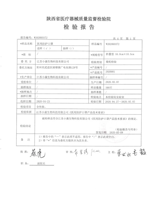 一次性医用口罩检测报告4
