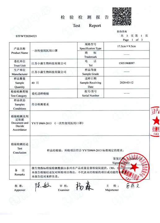 一次性医用口罩检测报告2